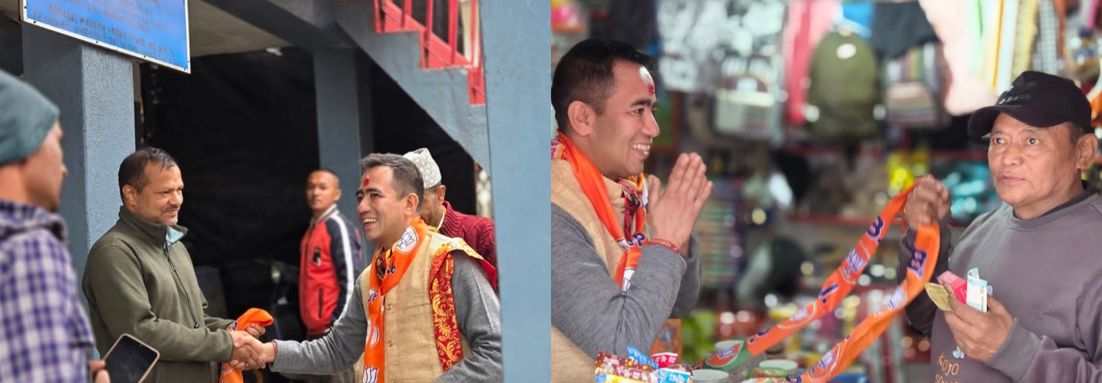 खरसाङ: खरसाङ विधानसभा समष्टिको लागि भारतीय जनता पार्टीको उम्मेद्वार सोनाम लामाले तकदह क्यान्टोनमेन्टमा जनसम्पर्क अभियान सम्पन्न गरेका छन्। उनले आज गेल भञ्ज्याङमा सम्पन्न जनसम्पर्क अभियान गरेका छन्। यसावधि उनले गाउँ–गाउँ पुगेर जनतासँग प्रत्यक्ष भेटघाट गर्दै उनीहरूको समस्या, सुझाव र अपेक्षाहरू सुनेका थि। यस अवसरमा उनले जनतामा भारतीय जनता पार्टीप्रति देखिएको अभूतपूर्व उत्साहले यसपटक परिवर्तन निश्चित छ भन्ने स्पष्ट संकेत दिएको बताएका छन्। युवादेखि ज्येष्ठ नागरिकसम्म सबैमा सकारात्मक सोच र विकासप्रतिको आशा देख्न पाएको र यस उत्साहले जनता अब वास्तविक विकास, पारदर्शिता र स्थायित्व चाहन्छन्। त्यसैले, यसपटकको जनमत परिवर्तनतर्फ उन्मुख छ भन्ने स्पष्ट भएको पनि बताए।