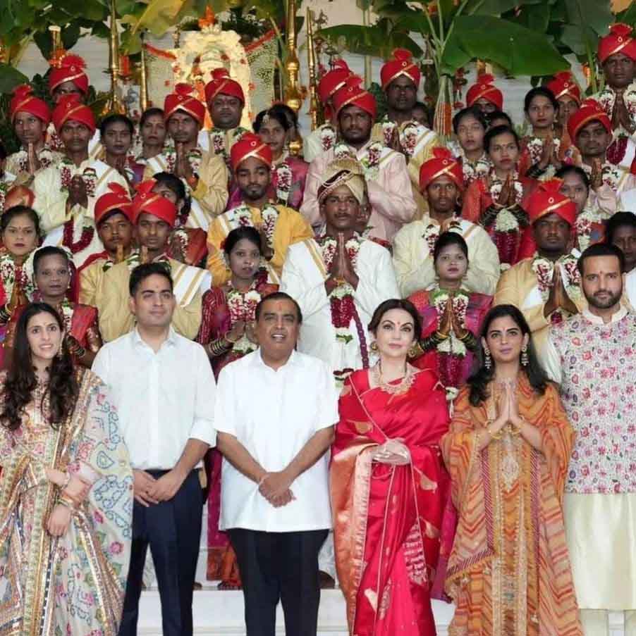 अम्बानी परिवारले सधैं सदाबहार भारतीय भनाइलाई समर्थन गरेको छ, ‘मानव सेवा नै माधव सेवा’ – ‘मानवताको सेवा नै ईश्वरको सेवा हो।‘ उनीहरूसँग प्रत्येक प्रमुख पारिवारिक अवसरलाई अरूलाई प्रदान गरेर र सेवा गरेर, समुदायप्रतिको आफ्नो प्रतिबद्धतालाई सुदृढ पारेर शुरु गर्ने परम्परा छ। श्रीमती नीता अम्बानी र मुकेश अम्बानी, उनीहरूका परिवारका सदस्यहरूका साथमा समारोहमा उपस्थित भए अनि यस शुभ अवसरमा व्यक्तिगत स्नेह थप्दै जोडीहरूलाई हार्दिक शुभकामना दिए।