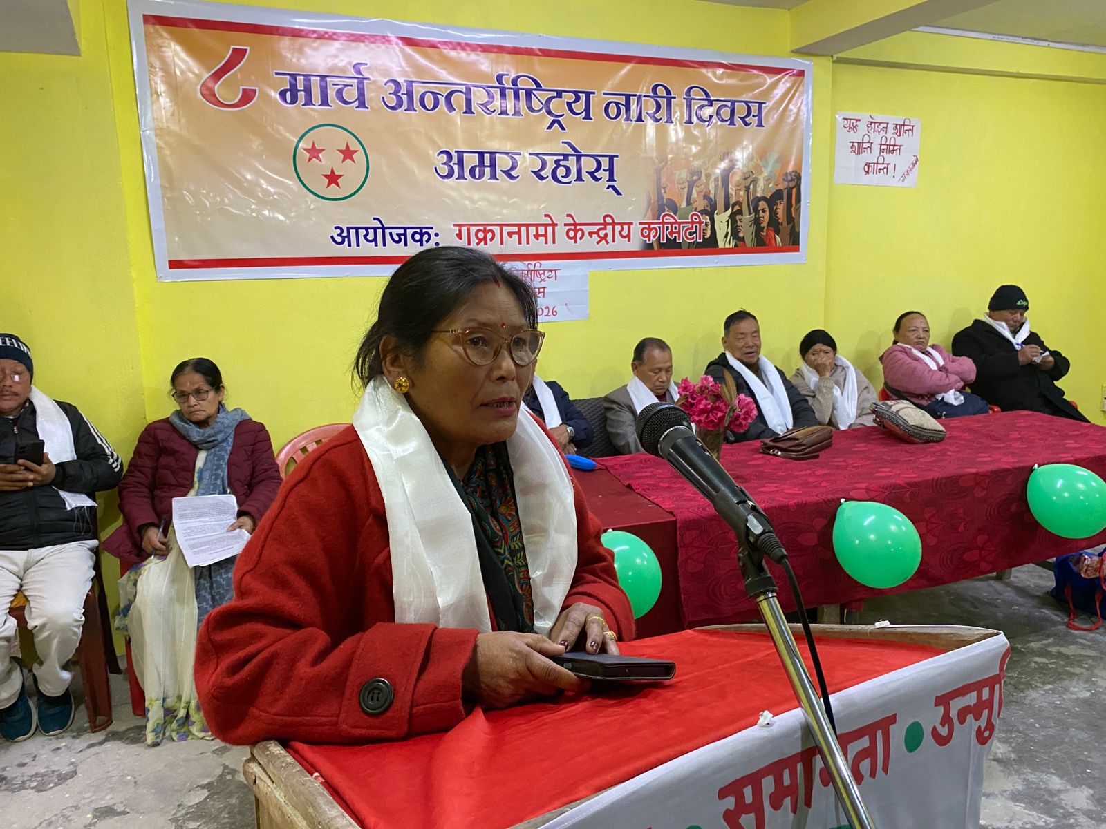 दार्जिलिङ: क्रामाकपा केन्द्रलयमा ११६औ अन्तर्राष्ट्रिय नारी दिवस कम० नीलम राई अनि कम. छेसाङ तामाङको अध्यक्षताद्वयमा सम्पन्न गरियो। यस ऐतिहासिक एवं महत्त्वपूर्ण कार्यक्रममा क्रामाकपा अधीनस्थ गणतान्त्रिक क्रान्तिकारी नारी मोर्चाको नेतृत्वमा पार्टी स्थापना कालदेखि नै मनाउँदै आइरहेको छ। जसमार्फत विश्व मानव समाजमा हुँदै आइरहेको नारी उत्पीडनबारे प्रकाश पार्दै आइरहेका छन् साथै यस विरुद्ध नारी शक्ति शसक्त बन्नुपर्छ भन्ने आह्वान् पनि गर्दै आइरहेको छ। कम० बानिरा गोतामेले सञ्चालन गरेको यस कार्यक्रमलाई गक्रानामो केन्द्रीय सचिवा सन्जिला घिसिङ अनि केन्द्रीय अध्यक्ष बिन्द्या गोतामीले आ आफ्नो सम्भाषण मार्फत क्रान्तिकारी सदस्यागणलाई यस विशेष क्षणमाथि सम्पूर्ण जानकारी गराइन्। यस कार्यक्रममा प्रमुख अतिथिको रुपमा क्रामाकपा शीर्षस्थ कमिटीका अध्यक्ष कम० आरबी राई उपस्थित रहेका थिए भने क्रामाकपा केन्द्रीय कमिटी सदस्यगणको पनि उपस्थिति रहेका थियो। प्रमुख अतिथिको रुपमा अध्यक्ष आरबी राईले आफ्नो सम्भाषणमार्फत नारी जगतको विगतकालीन अवस्था अनि वर्तमान अवस्थाबारे प्रष्ट पारे। उनले आफ्नो सम्बोधनमा भने, ‘धर्म शास्त्रले नारीहरुलाई कज्याएको थिए अझै छन् पनि नारीलाई ढोलको संज्ञाले सम्बोधन गर्थे। पशु सरह व्यवहार गर्ने चलन थिए। तर आज देशको प्रथम नागरिक अथवा राष्ट्रपति मुर्मु आदिवासी समुदायबाट बन्न पाउनु राज्यको मुख्यमन्त्री ममता ब्यानर्जी प्रमुख ओहोदामा विराजमान हुन पाउनु अति गौरवमय छन् मान्नुपर्छ।’