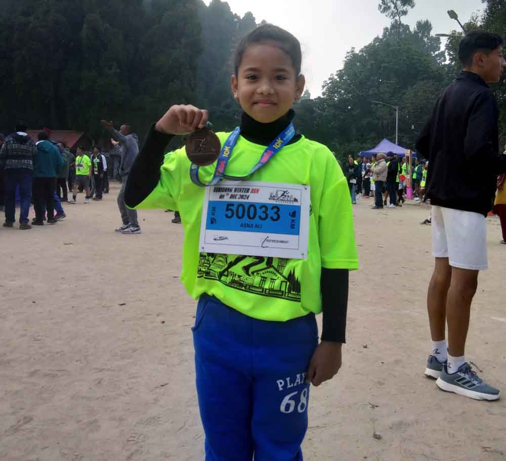 खरसाङकी आस्ना अलि नौ वर्ष पुगेकी हुन्l आस्नाले पनि पाँच किलोमिटरको दौड लगाइन्l दौडलाई उनले सानै उमेरमा जीवनको दौडतिर मोडेकी आभाष हुन्छ कुरा सुन्दाl जीवनको दौड लगाउँदै उनी पढेर आईपीएस बन्ने लक्ष्यमा छिन्l आस्ना ग्रीन बेल्ट हासिल गरेकी कराते खेलाडी हुन्l यसरी यस्तो दौडको प्रतियोगितमा भाग लिँदा आफूलाई खुबै राम्रो र खुशी लागेको उनी बताउँछिन्l आफू प्रतियोगितामा दुगुर्दा खरसाङको वन विभागको अफिस, डियर पार्कहरूको दृश्य रमाइलो लागेको कुरा गरिन्l हुन त आस्नाले यी सबै त पहिला पनि आमाबाबुसित घुम्न आउँदा देखेकी हुन्, तर आज आफू प्रतियोगितामा भाग लिएर दुगुर्दा छुट्टै रमाइलोपन महसुस भएको बताइन्l ठूली भएपछि के बन्ने? आस्ना भन्छिन्, ‘पढेर आईपीएस हुन्छुl’ आईपीएसमा के हुन्छ? उनी भन्छिन्, ‘पुलिस अफिसरl’