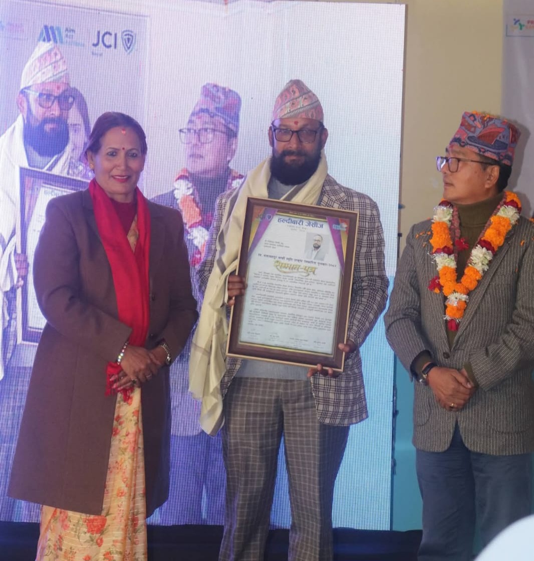 हल्दीबारी(झापा): सञ्चारकर्मी तथा शतक रक्तदाता नेत्रविक्रम बिमली ‘स्वर्गीय भक्तबहादुर कार्की स्मृति उत्कृष्ट पत्रकारिता पुरस्कार–२०८२’ बाट सम्मानित भएका छन्।हल्दिबारी जेसिजद्वारा आयोजित प्रथम पद हस्तान्तरण तथा व्यक्तित्व सम्मान