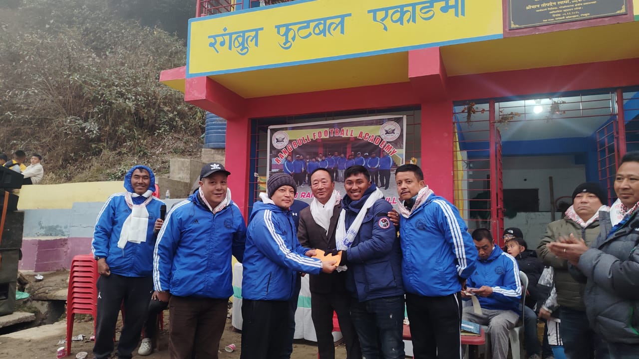सोनादा: रंगबुल फुटबल एकाडेमीकोको आयोजनामा भइरहेको विन्टर फुटबल कोचिङ क्याम्प २०२६ को समापन भएको छ। उक्त विन्टर फुटबल कोचिङ क्याम्प विभिन्न कार्यक्रमहरूको साथ समापन भएको छ जसमा शिविर सहभागीहरूद्वारा प्रस्तुत सांस्कृतिक नृत्य, संगीता थापाद्वारा गायन प्रस्तुति र सम्मानित अतिथिहरूको उपस्थितिमा सम्पन्न गरिएको छ। कार्यक्रममा जीटीएको डेपुटी चेयरम्यान राजेस चौहान, स्वर्गीय दावा माइला डुक्पाकी पत्नी लाक्पा डोमा भोटिया र रंगबुल पञ्चायत प्रधान योजना सुब्बा, पञ्चायत समिति याङ्लामु शेर्पा, पञ्चायत सदस्यहरू रञ्जिता सुब्बा र एनोशहाङ सुब्बा साथै युनाइटेड रंगबुल फुटबल क्लबका सदस्यहरू र अभिभावकहरू पनि उपस्थित रहेका थिए।
