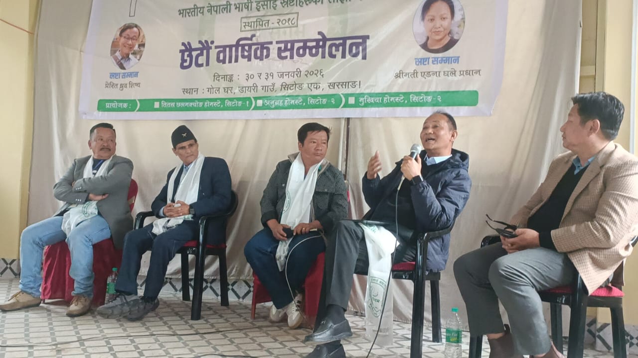 खरसाङ: भारतीय नेपाली भाषी इसाई स्रष्टाहरुको साझा मञ्च स्रष्टा सङ्गमको दुई दिवसीय छैंटौं वार्षिक सम्मेलन सिटोङमा सम्पन्न भएको छ। स्रष्टा सङ्गमको केन्द्रीय सभापति एल्डर राजु राईको अध्यक्षतामा सम्पन्न कार्यक्रमको दोस्रो दिन पनि साहित्यिक कार्यक्रम लगायत गीत र नृत्य प्रस्तुत गरिएको थियो। कार्यक्रममा विशिष्ट अतिथिको रुपमा हिमालयन पेन्टीकोस्टल चर्च डायोसिसको महासचिव एवं माइनोरिटी विभाग जीटीएको सल्लाहकार रेभरेन्ट रमेश गुरुङ र रेभरेन्ट दयाछिरिङ लेप्चा उपस्थित रहेका थिए।