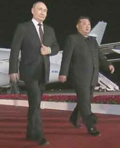 रुसी राष्ट्रपति भ्लादिमिर पुटिन बुधबार बिहान उत्तर कोरिया पुगेका थिए जहाँ उत्तर कोरियाक प्रमुख किम जोङ उनले उनलाई न्यानो स्वागत जनाए। विमानस्थलमा स्वागत गरेपछि किम पुटिनसँगै