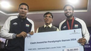 नयाँ दिल्ली: केन्द्रीय खेल मन्त्री मनसुख माण्डवियाले मंगलवार पेरिस प्यारालम्पिकमा पदक जित्ने भारतीय प्यारा खेलाड़ीहरूका निम्ति नगद पुरस्कारको घोषणा गरे। भारतले हालै सम्पन्न यी खेलहरूमा आफ्नो