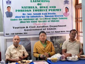 गान्तोक: सिक्किम सरकारको पर्यटन तथा नागरिक उड्डयन विभागले सबै जिल्लाहरूमा संरक्षित क्षेत्र पर्मिट जारी गर्ने घोषणा गरेपछि मंगन जिल्ला पञ्चायत उपाध्यक्ष, सोनाम किपा भोटियाले त्यसको विधिवत