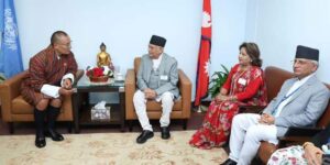 भद्रपुर: नेपाल र भूटानबीच जनस्तर र व्यापारिकस्तरमा सम्बन्ध विकासका लागि दुई प्रधानमन्त्रीबीच छलफल भएको छ।संयुक्त राष्ट्रसङ्घको ७९औँ महासभामा भाग लिन नेपाली प्रतिनिधिमण्डलको नेतृत्व गर्दै संयुक्त राज्य