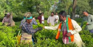 अलिपुरद्वार: भाजपाका उम्मेदवार राहुल लोहारले बिहीबार बिहान बन्दापानी ग्राम पञ्चायत अन्तर्गत चिया बगानमा जोरदार चुनाव प्रचार गरे। चुनाव प्रचार गर्दा हातमा चियाको पात लिएर यही माटोको