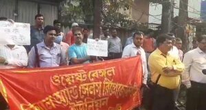 मालदा: बुधबार, सिन्टु-स्वीकृत पश्चिम बंगाल मेडिकल एण्ड सेल्स रिप्रेजेन्टेटिभ्स युनियनका सदस्यहरूले मालदामा एक औषधी कम्पनीको व्यवस्थापनको विरूद्ध विरोध गरे। आन्दोलनको एक भागको रूपमा, मालदा शहरको केजे