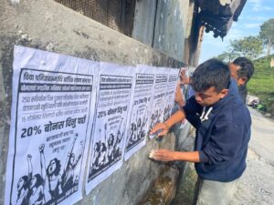खरसाङ: रहल ४ प्रतिशत बोनस लिएर आगामी १६ नोभेम्बरको दिन सिलगडीको दागापुरस्थित श्रमिक भवनमा हुने त्रिपक्षीय बैठकलाई केन्द्र गरेर हिल प्लान्टेसन इम्प्लोइज युनियनले पोस्टरिङ अभियान शुरू