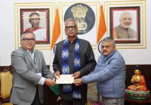 गान्तोक: सिक्किमका राज्यपाल ओम प्रकाश माथुरसॅंग आज सिक्किम फुटबल एसोसिएशन (एसएफए) का अध्यक्ष मेनला इथेन्पा र उपाध्यक्ष अर्जुन रोकाले राजभवनमा शिष्टाचार भेट गरेको अवसरमा एसएफएका प्रतिनिधिहरूले