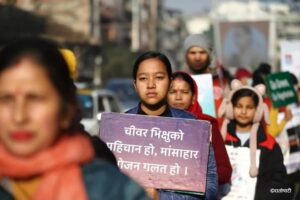 काठमाण्डू(नेपाल): चिनसँग भएको भैँसीको मासु निर्यातबारे सम्झौता खारेज गर्न माग गर्दै सम्झौताको विरुद्धमा विभिन्न संघ संस्थाले शनिबार विरोध प्रदर्शन गरेका छन्। नेपालले वार्षिक साढे एक अर्ब