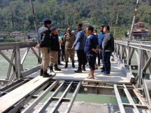 गान्तोक: मंगन जिल्लाका जिल्लापाल अनन्त जैनले आज फिदाङमा क्षतिग्रस्त पुलको निरीक्षण गरे। जुन ओभरलोड ट्रकका कारण पुल क्षतिग्रस्त भएको थियो त्यस ट्रकलाई पुलिसले आफ्नो नियन्त्रणको लिएको