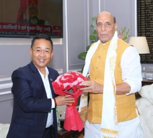 गान्तोक: गत दुई दिनदेखि आधिकारिक भ्रमणमा दिल्ली पुगेका मुख्यमन्त्री प्रेमसिंह तामाङले आज देशका केन्द्रीय रक्षामन्त्री राजनाथ सिँहसँग भेट गरे। भेटको क्रममा मुख्यमन्त्री तामाङले केन्द्रीय मन्त्री सिंहलाई