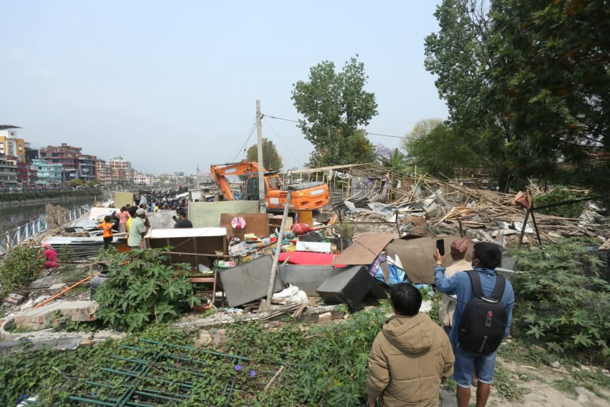 काठमाडौं: नेपाल सरकारले काठमाडौंका विभिन्न नदी किनारामा रहेका सुकुम्बासी बस्ती र अव्यवस्थित घर टहरा हटाउने कार्यलाई तीव्रता दिएको छ। यसैक्रममा शनिबार बिहानैदेखि सुरक्षाकर्मी र कर्मचारीहरूको ठूलो