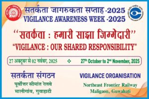 মালিগাঁও: উত্তর-পূর্ব সীমান্ত রেলওয়ে তার সমস্ত ডিভিশন, ওয়ার্কশপ এবং নির্মাণ ফিল্ড ইউনিটে ২৭ অক্টোবর থেকে ২ নভেম্বর, ২০২৫ পর্যন্ত সতর্কতা সচেতনতা সপ্তাহ পালন করবে। এই বছর