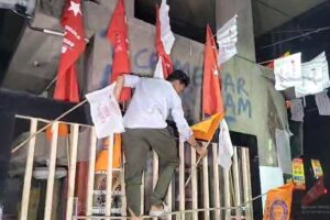 যাদবপুর ক্যাম্পাসে এসএফআই-এর পতাকা খুলে বিক্ষোভ এবিভিপি