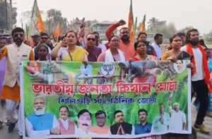 बगाल: शेख शाहजहाँलाई कठोर सजाय दिनुपर्ने मागमा किसान मोर्चाद्वारा फाँसीदेवा थानामा विरोध प्रदर्शन