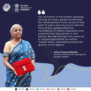 नयाँ दिल्ली: केन्द्रीय वित्त एवं करपोरेट कार्यमन्त्री श्रीमती निर्मला सीतारमणले आज संसदमा केन्द्रीय बजेट २०२५-२६ पेश गर्दै आगामी पाँच वर्षले “सबैको विकास”को दृष्टिकोणलाई वास्तविक रूप दिनका लागि