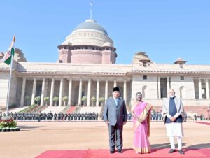 नयाँ दिल्ली: इन्डोनेसियाका राष्ट्रपति प्रबोवो सुबियान्तोलाई आज भारतका राष्ट्रपति द्रौपदी मुर्मू र प्रधानमन्त्री नरेन्द्र मोदीले स्वागत जनाए। अक्टोबर २०२४ मा पदभार सम्हालेपछि यो प्रबोवो सुबियान्तोको पहिलो