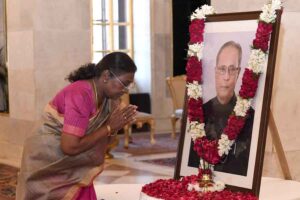 नयाँ दिल्ली: राष्ट्रपति द्रौपदी मुर्मुले आज (११ दिसम्बर) राष्ट्रपति भवनको अशोक मण्डपमा पूर्वराष्ट्रपति प्रणव मुखर्जीलाई उनको जन्मजयन्तीमा पुष्पाञ्जली अर्पण गरिन्। -पीआईबी