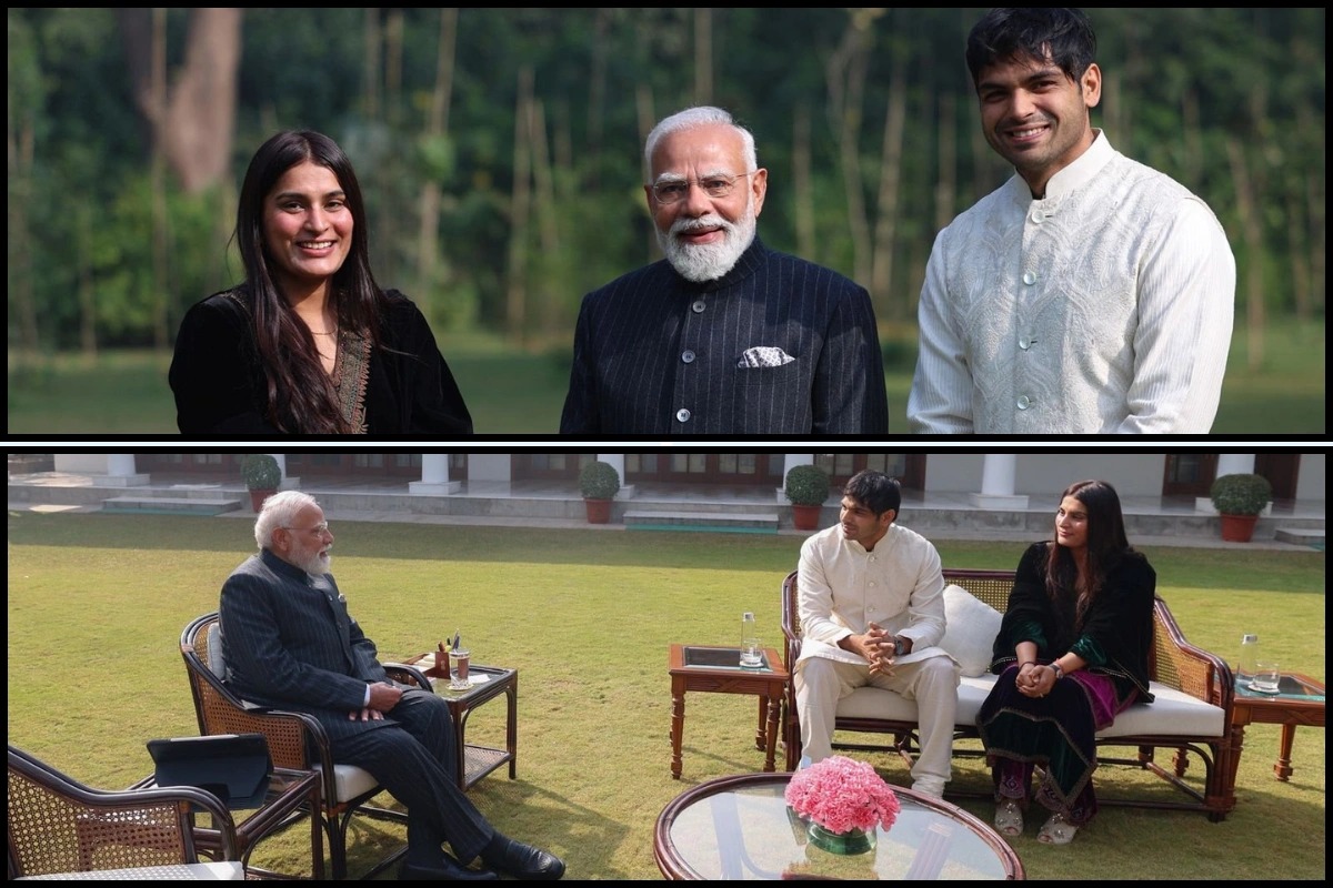 नयाँ दिल्ली: भारतका दिग्गज ज्याभलिन थ्रो खेलाड़ी नीरज चोपड़ाले मंगलवार प्रधानमन्त्री नरेन्द्र मोदीसँग उनको आधिकारिक आवासमा भेट गरे। दुईपल्टका ओलम्पिक पदक विजेता नीरजसँग उनकी पत्नी हिमानी