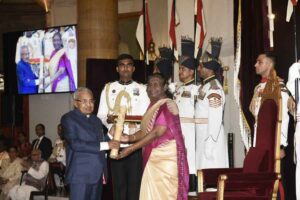 भारतका राष्ट्रपति द्रौपदी मुर्मुद्वारा डा. सीताराम जिन्दल प्रतिष्ठित पद्मभूषण पुरस्कारले सम्मानित