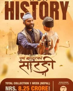 झापा: ‘पूर्णबहादुरको सारङगी’ ले आज नेपालभरका हलहरुमा ३८० भन्दा धेरै शो पाएको छ भने फिल्मले पहिलो हप्तामा ८.२५ करोड कमाउदै पहिलो हप्तामा सबै भन्दा धेरै कमाउने