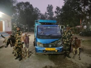 गाउँलेहरूको सहयोगमा बीएसएफद्वारा तस्करी भइरहेको गाईहरू बरामद