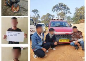 शिलांग: पुलिसको विशेष कक्षले १०१ इलाकाबाट तीनजना मोटरसाइकल चोरलाई पक्राउ गरेको हो।पक्राउ पर्नेमा ३० वर्षीय टिमुस वारबाह, २६ वर्षीय बाबर मावब्ले र २३ वर्षीय सिन्राप्लाङ माक्रीलाई