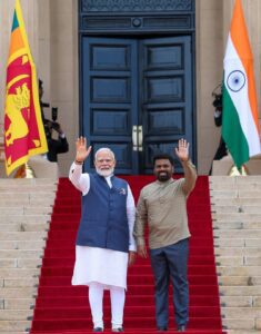 কলম্বো: তিনদিনের সফরে শ্রীলঙ্কায় পা রাখলেন প্রধানমন্ত্রী নরেন্দ্র মোদি। বিমানবন্দরে রাজকীয় অভ্যর্থনা জানানো হয় তাঁকে। কলম্বোতে নমোকে স্বাগত জানান শ্রীলঙ্কার প্রেসিডেন্ট অনুরা কুমারা দিশানায়েক। এরপর হোটেলেও