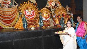 জগন্নাথ মন্দিরের প্রতিষ্ঠার পর দিঘায় প্রথম রথযাত্রা উৎসব হতে চলেছে। ঠিক তার আগেই রথযাত্রা উপলক্ষে দিঘায় পৌঁছে গেলেন মুখ্যমন্ত্রী মমতা বন্দ্যোপাধ্যায়। শুক্রবার রথের রশিতে টান দিয়ে