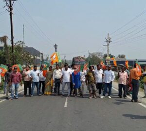 भाजपा ने तृणमूल पर सरकारी जमीन पर कब्जा कर उसे बेचने का आरोप लगाते हुए किया सड़क जाम