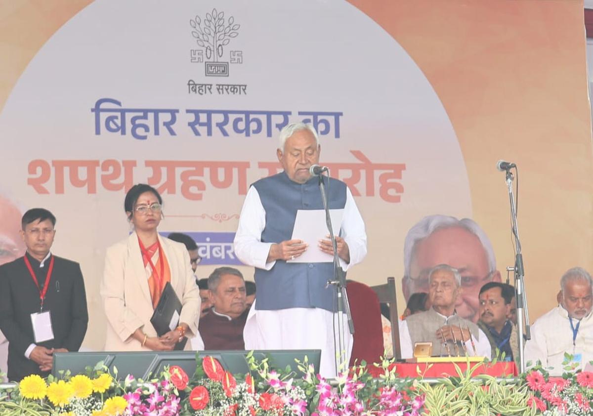 पटना: गुरुवार को आयोजित एक भव्य समारोह में जेडी(यू) नेता नीतीश कुमार ने रिकॉर्ड दसवीं बार बिहार के मुख्यमंत्री पद की शपथ ली। शपथ ग्रहण समारोह