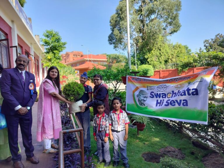 काठमांडू: भारतीय राजदूतावास काठमाण्डू परिसर में स्थित केन्द्रीय विद्यालय में १७ सितम्बर से २ अक्टूबर तक स्वच्छोत्सव पूरे धूमधाम से मनाया जा रहा है। प्रत्येक दिन के लिए अनेक गतिविधियाँ निर्धारित की गई हैं। स्वछोत्सव कार्यक्रम के आरम्भ में स्कूल कोऑर्डिनटर डॉ आनंद कुमार त्रिपाठी ने सभी को स्वच्छता की शपथ दिलाई और संस्कृत शिक्षक श्री डी.पी.दास ने स्वच्छता पर संभाषण किया। इसी क्रम में गुरुवार को हिन्दी पखवाड़ा समारोह के अवसर पर विद्यालय में विशेष स्वच्छता अभियान चलाया गया। समारोह की मुख्य अतिथि डॉ. (श्रीमती) पारुल पाण्डेय जी ने पौधारोपण करके पर्यावरण संरक्षण का संदेश दिया।