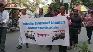 दार्जिलिङ समतल जलपाईगुडी ई-रिक्शा वेलफेयर एसोसिएसन अवैध टोटोमाथि प्रतिबन्धको माग गर्दै सडकमा उत्रिए