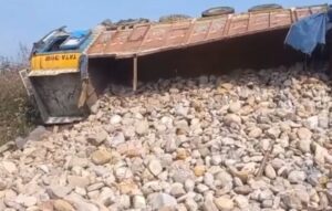 खोरिबारीमा ढुंगा बोकेको लरी दुर्घटना
