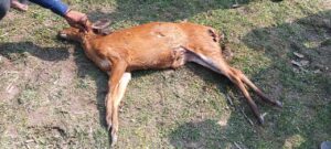 जलपाईगुडी: आज बिहान करिब ८ः३० बजे क्रान्ति ब्लकको झारमजग्राम क्षेत्र महुआतलामा रहेको सुनसान खेतमा स्थानीयवासीले मृत हरिण देखे। त्यसपछि स्थानीयवासीले आपलचन्द रेन्ज अफिसलाई खबर गरे। अपलचन्द