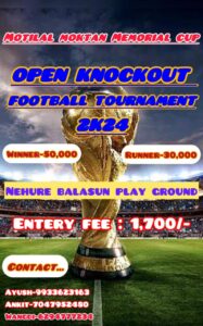 बालासन: नेहुर बालासन ड्रीमर्स फूटबल क्लबको तत्त्वावधानमा आउँदो १४ जुलाईदेखि मोतिलाल मोक्तान स्मृति ओपन नक्आउट फूटबल टुर्नामेण्ट २०२४ आयोजन गरिनेछ। नेहुर बालासन खेल मैदानमा हुने यस