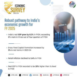नयाँ दिल्ली: केन्द्रीय वित्त एवं करपोरेट कार्य मन्त्री श्रीमती निर्मला सीतारमणले आज संसदमा आर्थिक समीक्षा २०२३-२४ पेश गर्दै २०२४-२५ मा भारतको वास्तविक सकल घरेलु उत्पाद (जीडपी)