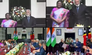 डिली (पूर्वी टिमोर): राष्ट्रपति द्रौपदी मुर्मुले शनिबार पूर्वी तिमोरका प्रधानमन्त्री राला सानाना गुस्माओसँग द्विपक्षीय भेटवार्ता गरिन्। तीन देशको भ्रमणको अन्तिम चरणमा उनी डिली पुगेकी हुन्। दुई