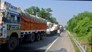 बंगाल र झारखण्डको सीमा सिल, डुबरी दिही राष्ट्रिय राजमार्गमा ट्रकको लामो लाइन