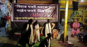 जलपाईगढी: कोलकाताको आईजी कर अस्पतालमा प्रशिक्षार्थी महिला डाक्टरमाथि भएको क्रूरता र क्रूरताको विरुद्धमा जनताको विरोध जारी छ। यसै क्रममा बुधबार राति जलपाईगढीको नागरिक मंचले सडक नाटक