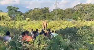 जलपाईगढी: मालबजार ब्लकको दमडीम पेट्रोल पम्पको छेउमा रहेको क्षेत्रमा रहेको बौद्ध विहारको अगाडि एउटा जंगली हात्ती उभिएको खबर फैलिने बित्तिकै स्थानीय बासिन्दा र पर्यटकको भीड लाग्यो।