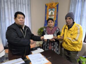 गान्तोक: जिल्ला आपदा प्रबन्धन प्राधिकरणको मापदण्डहरूअनुसार पाकिम जिल्लाका जिल्लापालको निर्देशमा महकुमा अधिकारी टेन्डुप लेप्चाले आज एक कार्यक्रमबीच मालीगाउँ निवासी अग्निपीड़ित शान्ति प्रसाद शर्मालाई सहयोग राशिको चेक