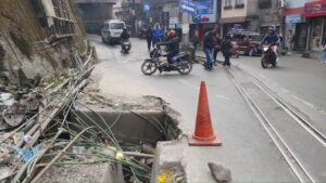 खाल्डा झट्टै मरमत्ति गरिनु पर्ने आवश्यकता खरसाङ: खरसाङ बजारको अस्पताल मोडमुनि रहेको खाल्डामा बिहीबार एउटा गाडी फँसेको थियो। खरसाङ बजारको अस्पताल मोडको वान वे क्षेत्रमा रहेको