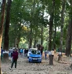पिकनिक स्थलमा गीतको धुन बज्दा हात्तीको आगमन