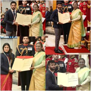 नयाँ दिल्ली: राष्ट्रपति द्रौपदी मुर्मुले शुक्रबार (१७ जनवरी) राष्ट्रपति भवनमा आयोजित एक समारोहका क्रममा खेल र साहसिक पुरस्कार २०२४ 2024 प्रदान गरेकी छन्। यो पुरस्कार कार्यक्रममा