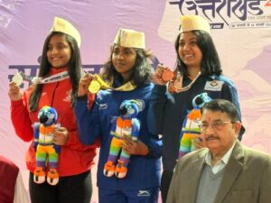 देहरादून: युवा शूटर नर्मदा नितिन राजूले यहाँ ३८औं राष्ट्रिय खेलहरूमा महिलाहरूकी १० मीटर एयर राइफल स्पर्धामा स्वर्ण पदक जितिन्। यस अवधि उनले एशियन गेम्सकी पदक विजेता