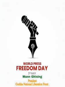 दार्जीलिंङ: गोरामुमोकेन्द्रीय समितिले आज प्रेस बिज्ञप्ति प्रकाशित गरी प्रत्येक वर्ष मई ३ तारिखका दिन विश्वभर “विश्व प्रेस स्वतन्त्रता दिवस” मनाइन्छ। यो दिवस पत्रकारिता क्षेत्रको सम्मान, प्रेस